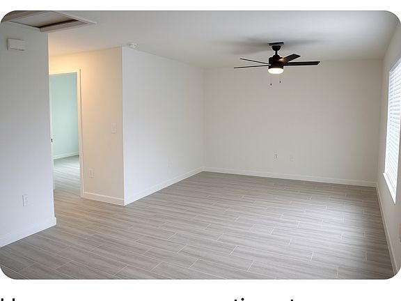 This modern home offers porcelain tile flooring throughout, stainless steel appliances, granite countertops, central A/C, and remote ceiling fans in every room.