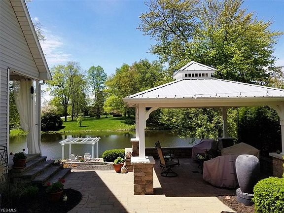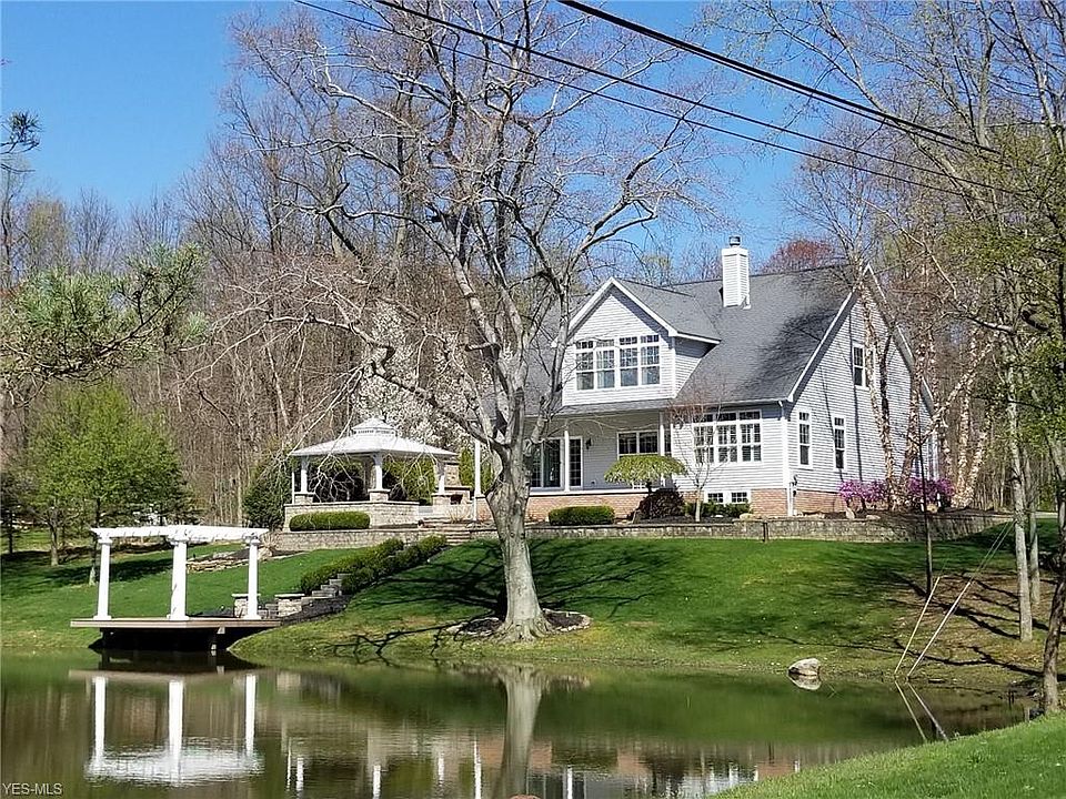 Magnificent property, and the entire interior is freshly painted! Custom KNL-built Cape Cod on gorgeous lot with beautiful lake in Bath Township. Open floor plan perfect for entertainment or family gatherings. The home showcases clean, modern lines with all principal rooms positioned for sweeping views of the lake. The property has been professionally landscaped and includes a new patio with pavilion, a new flagstone walkway and an enlarged storage shed. The kitchen features white cabinets with granite counter tops and stainless steel appliances that will remain. It is open to the great room, which offers custom built-ins, a 9 ft. ceiling, birch floor and gas fireplace. The first floor master suite has been updated with plantation shutters. Updates in the master bath include newer cultured marble counter tops, a newer soaking tub, built-in white cabinets, and a tile floor and two-sink vanity. There are two additional bedrooms on the second floor, plus a loft-type space great for a 4th bedroom or studio. All have hardwood floors. The fully finished lower level features a theater room, bar and office/utility workspace. All garage doors have been replaced. An incredible veranda surrounds the back of the house and leads to a flagstone walkway and stone fireplace. Walk down this path to enjoy the dock, and relax while taking in the beautiful views. This property truly is a "slice of Heaven!"