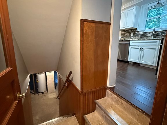Carpet in living room and all 3 bedrooms. Non working fireplace in living room. Full bath with tub/shower, tile floors, large storage closet.
