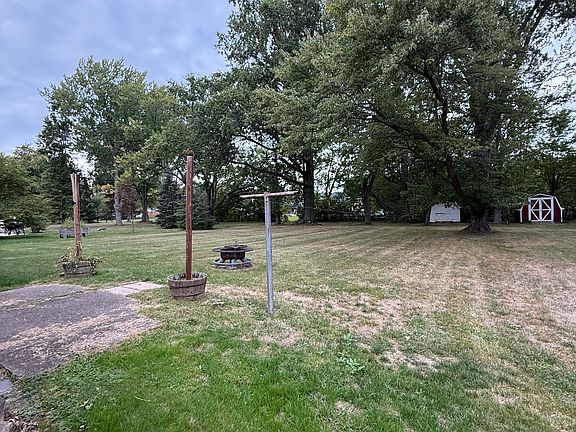 Home is a single living level with laundry in unfinished basement. Large garage with small cement patio in large backyard. There are steps to get into the home.