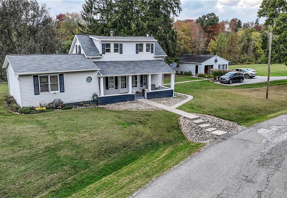 Very nice country setting at this well-maintained home outside of Woodsfield, Ohio on over 2 acres! This home has had many updates throughout the years along with a nice addition. When you pull up to this home you will notice the long driveway, ideal for lots of parking. When you enter the side door you will be greeted with a nice-sized kitchen with an island along with a nice gas fireplace. There is also a convenient first floor laundry room. Make your way into the living area and you'll find plenty of area for seating and a dining room table. The living area also features a nice Buck Stove wood burner that can heat most of the house. You will then continue into the addition where you will find a large master bedroom along with a full bathroom. There is also a second full bathroom conveniently located on the main floor. When you go upstairs you will find 3 more bedrooms, with plenty of room for family or guests. Also part of the addition is a partially finished basement. The current owner used this area for storage, canning and a 5th bedroom. When you go back outside you will find a nice detached garage with an additional finished and heated space that would be great for additional living quarters or a man cave! The property also has 2 sheds for storage. The roof on the home is only 3 years old. Mineral rights are not owned and do not convey. Property is selling as is with the right to inspect.