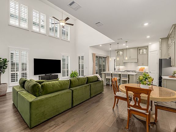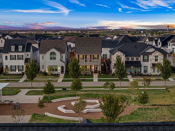 Rare park-front views, walkable resort style amenities and a low maintenance lifestyle - all just moments from the PGA District, Fields Ranch golf and future Fields West, the city’s next destination for premier shopping, dining, and entertainment. Enjoy peaceful green views from your private balcony. This open, modern design with a spacious two-story gathering space offers bright living areas and high quality finishes throughout. Off the foyer, a versatile front bedroom with double doors makes the perfect study or guest space, adjacent to a full bath with a walk-in glass shower and vanity. The kitchen flows seamlessly into the dining nook and spacious living area with soaring ceilings and a wall of windows bringing in an abundance of natural light through beautiful plantation shutters throughout the main level. A sliding door opens to a covered patio and side yard. Upstairs, the open loft provides a flexible game or media area. Two secondary bedrooms feature walk-in closets and share a full bath with a glass-enclosed tub-shower combo. The luxurious primary suite offers a vaulted ceiling, plantation windows, and private balcony. The ensuite bath showcases double French doors, dual vanities, spa-like glass shower, and dual custom walk-in closets. Just steps away from elevated community amenities including two resort- style pools with cabanas and grills, a clubhouse, gathering spaces, state of the art fitness center, tennis and pickleball courts with an activities director on site to curate events designed for connection. Don’t miss the opportunity to live in this premier destination with all that Fields Frisco has to offer!