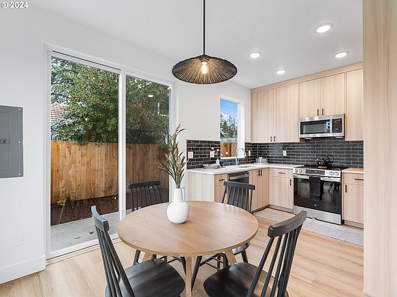 This is not a condo, no HOA! No money down - 100% financing options available! PHENOMENAL location meets elevated design + modern architecture with this gorgeous new construction home! Just steps from NE Fremont St, you'll have access to trendy restaurants, chic shops, cozy coffee spots, parks, and more! This impeccably designed home features an open-concept floor plan with warm tones and expansive windows, creating a light and airy ambiance. Enjoy the comfort of a private, fenced patio, complete with coveted AC for those warmer days. High-end finishes elevate each space, starting with the custom kitchen that showcases modern and warm cabinetry, an extensive tile backsplash, and an upgraded stainless steel appliance package. Upstairs, find two spacious bedrooms and luxurious bathrooms, providing both style and functionality. This condo seamlessly combines convenience with contemporary elegance for the ultimate living experience. Enjoy peace of mind with a 1-year builder warranty! (List price is subject to the buyer qualifying for the Portland Housing Bureau - System Development Charge exemption program to promote affordable housing in Portland, call for more info.)