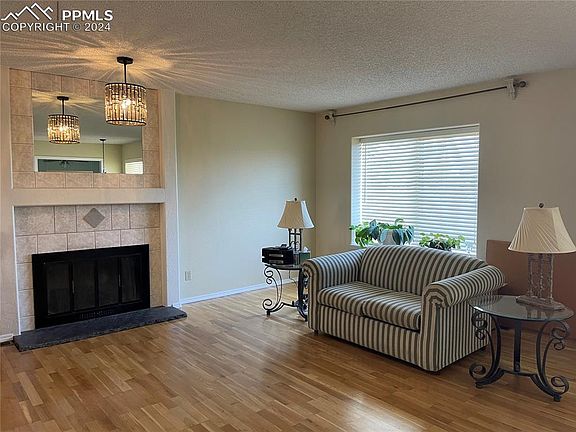 Come and see this beautifully maintained home with gorgeous mountain views. This large corner lot has a spacious patio with a hot tub, gas grill and a fire pit. Enjoy your morning coffee on the beautiful deck overlooking Cheyenne mountain. The home has been updated throughout with oak cabinets, refinished hardwood floors and windows. The master bedroom has an attached bathroom and door that leads to the private deck. The lower level has a large walk in shower, bedroom and den. There is off street parking and a large stucco storage shed. Don't miss out on this great home!