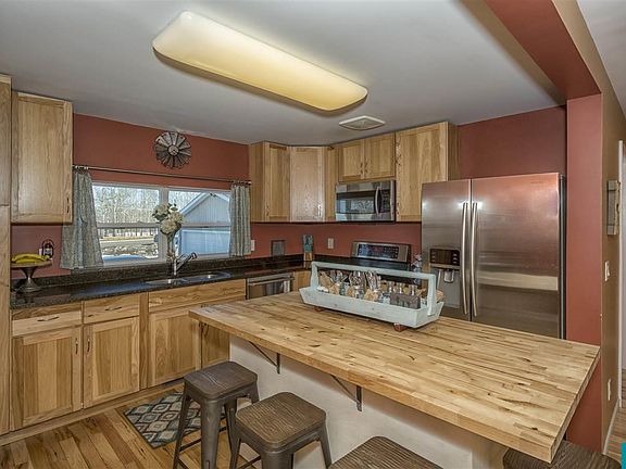 3669 Haines Rd is a lovely and spacious 4 bed, 3 bath home in Hermantown! The main level of the home has an open floor plan with an updated kitchen, living room, and two bedrooms. The kitchen has beautiful cabinets and counter tops, stainless steel appliances, hardwood floors, a kitchen island, and room for a table. The master bedroom has a walk-in closet and 3/4 attached master bath. A sliding glass door off of the living room leads to a deck with views of the back yard. In the basement is a big family room just perfect for movies, a play area, office space, or whatever you desire. Two bedrooms, a full bath, and a laundry room round out the basement. Plenty of storage space as well. Sitting on a 1.5-acre lot, this home has lots of room to play in the back yard, as well as plenty of off-street parking in addition to the 2 car garage. Two decks offer great spots to BBQ or just enjoy the outdoors and views of the yard and woods.