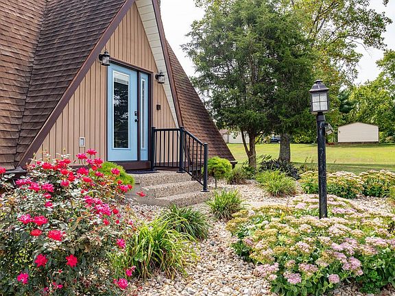 Property is under a 1st Right Contingency. The buyer needs to sell their current home in order to buy this home. Seller is allowed to market and consider other offers. Beautifully re-done A-Frame two story over a full walk out basement, 4 bedroom home on a picturesque mostly level 5 acre parcel. Enjoy amazing sunrises while being minutes away from west side amenities, parks, and access to I-69. You could have your own hobby farm with the 36X32 outbuilding. There is also an oversized 2 car attached garage Please see attached document of Updates and Features. From top to bottom the home has been thoughtfully touched with updates and upgrades. Not all but some updates are Anderson windows throughout plus 2 exterior doors. Fully renovated kitchen including cabinets, granite counters, & stainless appliances. All, 2 full and 2 half baths fully redone. The lighting, all flooring done with luxury vinyl plank & new carpet in upstairs bedrooms and stairs, Paint throughout, ventless gas log, built-ins, & more & more!! The primary bedroom is on the main with attached bath and 2nd bedroom on the main which is being used as an office. Laundry is also on the main. Snuggle up on the couch by the fireplace or enjoy the beautiful sunrise from your back deck. Don’t miss your opportunity on this lovely updated 2 owner home that is move in ready and ready for its new owners.