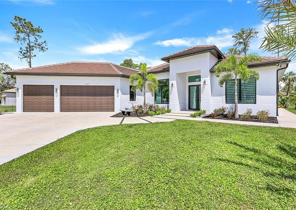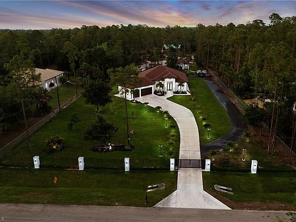 IMPRESSIVE, EXQUISITE, INCREDIBLE!! POOL HOME WITH GUEST HOUSE with 3665 total living area! THIS IS A ONE OF A KIND PROPERTY IN HIGHLY DESIRED GOLDEN GATE ESTATES! Stunning custom build POOL HOME WITH 4+ BEDROOM AND 3 BATHROOM HOME THAT SITS IN 2.5 UPLAND! PROPERTY INCLUDES A GUEST HOUSE 995sqft living area featuring 2bed/2bath with laundry room, separate private entrance and parking. Every detail was beautifully designed from crown molding, tray ceilings, high-end quartz countertops, Chef's kitchen with waterfall at island and solid wall backsplash, Custom Tv entertainment center, wet bar. Outdoor kitchen equipped with sink, cooktop, and refrigerator by the heated pool. Palms accent the entry driveway, concrete driveway with accent lights, paved deck with firepit, hammocks and gazebo over grill, Gated home completely fenced with 9-cameras security system. POOL features: Screen in lanai, outdoor shower, HEATED, sundeck with lounge chairs. Upgrade list available upon request including all the details of the home. Attached in MLS. Even the most discerning buyer will realize how special this property is, schedule your visit today. COMES WITH ONE YEAR WARRANTY!