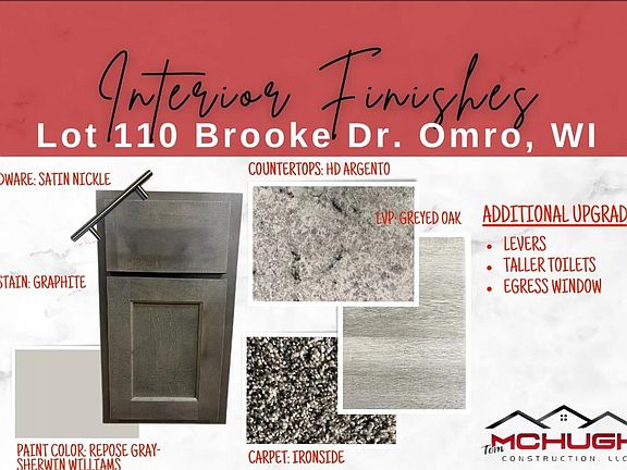 Welcome home from Tom McHugh Construction. The 1328-CH floor plan is offers 3 bedrooms, 2 baths and a 2 car garage. Upgrades include taller toilets and egress window in basement. Standard inclusions include- Pella windows, Insulated garage doors with windows, Fiberglass exterior doors, Garage service door, Maple cabinets with soft close doors and drawers, Poplar interior trim and solid doors, AC Completion date is January 15, 2026. Front image is computer generated.