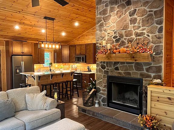 Unrestricted Getaway or Your Next Airbnb! Discover another fabulous home by ALLENHOMES, where craftsmanship and quality meet rustic charm. This country log home offers all the high-end finishes and thoughtful details you’ve come to expect from this highly sought-after builder. The main level features a spacious primary bedroom and bath, along with an open-concept kitchen, dining, and living area highlighted by a southern wall of windows that fills the space with natural light. A floor-to-ceiling stone woodburning fireplace creates the perfect cozy centerpiece for relaxing or entertaining. Step through the glass doors to enjoy the covered porch and deck, ideal for taking in peaceful sunsets through the trees — and when the leaves fall, you’ll love the expanded mountain view! The entryway provides plenty of space for cubby storage for coats and shoes, while a convenient main-level laundry closet makes daily living easy. The finished lower level offers two additional bedrooms, a full bath, and an inviting family room that opens to a covered patio area wired for a hot tub. There’s even a generator hookup for peace of mind. Whether you’re looking for a private retreat, full-time residence, or an income-producing Airbnb, this unrestricted property offers endless possibilities and timeless mountain appeal!