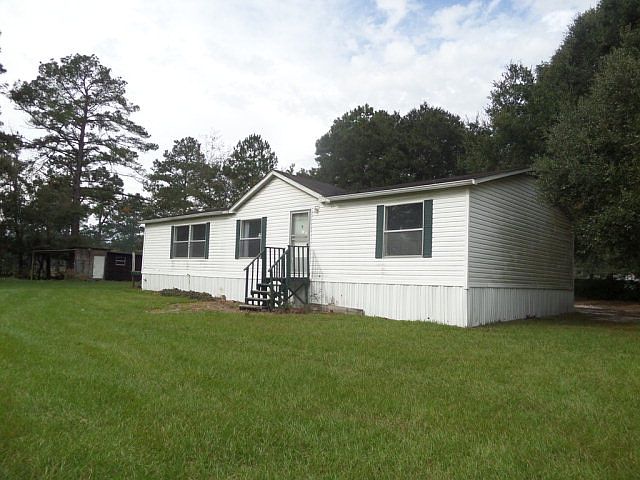 This 3 bedroom, 2 bath mobile home is tucked away from the main road on 1.1 acre of land. Extra storage in the shed located in the backyard. Large garden tub in Master bathroom. Kitchen and Living area has open floor plan. Kitchen equipped with appliances. Property sold as-is.