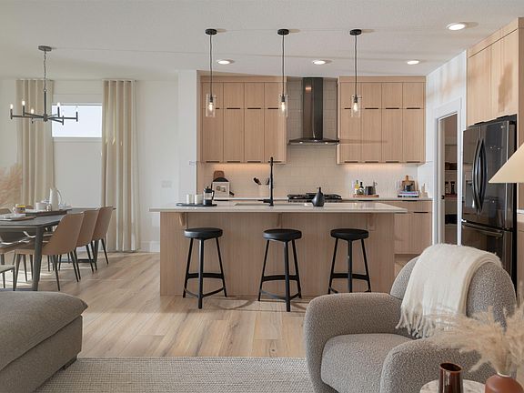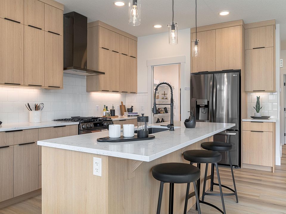 Introducing a stunning MOVE IN ready Showhome with POND view, built by Anthem in the highly desirable community of Glenridding Ravine, South Edmonton! This thoughtfully designed 2-storey with double attached garage offers a MAIN floor Bedroom, SIDE entrance for future basement development, and a walk-through PANTRY. The OPEN-CONCEPT main floor features a bright living room, large dining area, and stylish kitchen with quartz countertops, modern lighting, and appliances. Upstairs, enjoy 3 spacious bedrooms, a versatile BONUS room, and convenient Laundry. The primary suite boasts His & Hers sinks and an upgraded ensuite. High-end finishes include vinyl flooring on the main level, bathrooms, and laundry, with plush carpet upstairs. Additional upgrades include a 9’ foundation, deck and A/C. Located in Glenridding Ravine, part of established Windermere, this vibrant community offers trails overlooking Whitemud Creek Ravine, schools, shopping, recreation, and nature — all in one place!