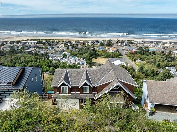 Perched on a scenic coastal bluff, this extraordinary home offers unparalleled ocean views from every room, immersing you in the beauty of the Pacific Northwest coastline. The expansive windows flood the home with natural light and offer breathtaking panoramic vistas of the ocean, providing a sense of serenity and connection with nature. Whether you're in the living room, dining area, or primary private bedroom suite, the captivating sight of the waves will greet you daily. Recently updated, the property features a brand-new roof and advanced gutter systems, ensuring long-term protection against the elements. The home has also been resided with Hardiplank. A newly installed heat pump adds to the home's efficiency. The gourmet kitchen boasts beautifully refaced cabinets that give it a fresh, modern appeal, while still maintaining a welcoming, cozy atmosphere. This home is designed for those who love both indoor and outdoor living, with decks on every level, perfect for soaking in the ocean breeze and enjoying sunsets over the water. There is a laundry room on both the main and upper levels for convenience. One of the standout features of this home is the fully equipped guest quarters on the lower level, perfect for hosting friends and family in comfort and style. Complete with its own entrance, it provides privacy and convenience, making it ideal for extended visits or even as an income-generating rental space. In addition to its aesthetic appeal, the home is also structurally reinforced for long-term stability. Terra Firma recently bolted the foundation 30 feet down, ensuring rock-solid durability and peace of mind for years to come. The attached garage features large tool chests and a work area, as well as storage. This is a rare opportunity to own a piece of coastal paradise, where every detail has been carefully curated to enhance both aesthetics and functionality, making it an inviting retreat for those seeking the ultimate oceanfront lifestyle.