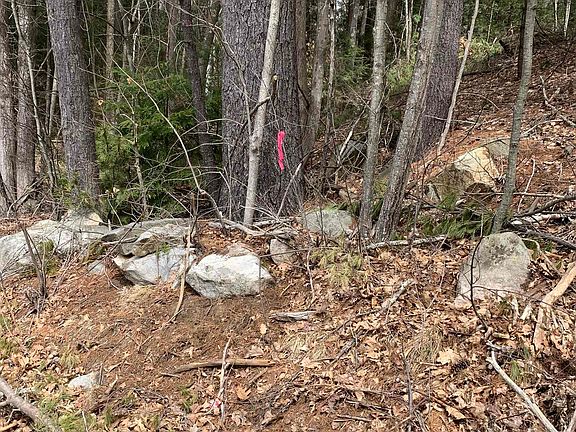 A shared driveway curves up the hill to a private elevated lot above and away from the road. A small brook bisects the property. Stone walls define the back and westerly boundaries. Seller is a licensed surveyor and will include a free septic design with purchase.