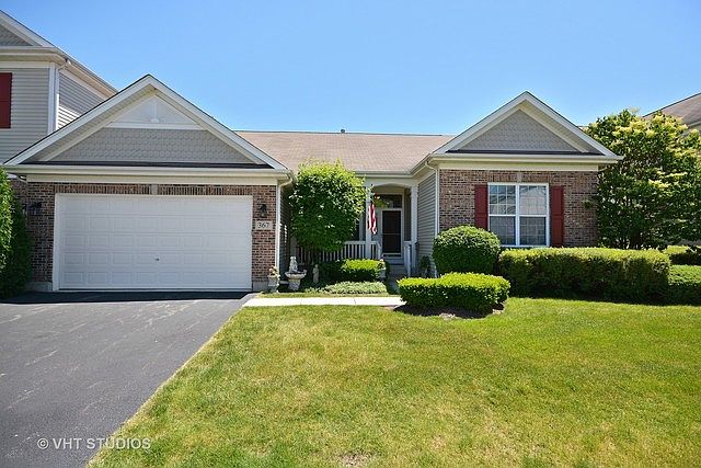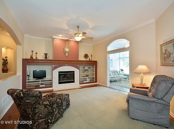 PRISTINE "RANCH" VILLA W/FINISHED, ENGLISH BASEMENT IN FISHER FARMS IN GENEVA! Lovely front porch to relax & enjoy! This home features an open floor plan w/3"maple hardwood flooring, crown molding/chair rail, 10' ceilings, decorative niches, upgraded light fixtures & more. Formal din rm for special dinners. Comfortable family rm w/fireplace, built ins, ceiling fan plus french doors. Kitchen w/patio door plantation shutters, abundance of 42"cabinetry w/crown, center island & breakfast area opens to delightful sunroom. There is a spacious master bedroom suite w/two closets plus linen closet. Master bathroom has skylight, dual vanities, soaker tub & separate shower. Bedrooms 2 & 3 share Jack'n'Jill bathroom. All bedrooms have ceiling fans. FABULOUS FINISHED BASEMENT w/new carpet, Bed 4 (options) w/cedar closet, 1/2 bath, rec, game area, wet bar w/cabinetry plus storage area w/work space. Large deck to enjoy summer! 2 car garage. Near shopping, restaurants & school. Metra train in Geveva!