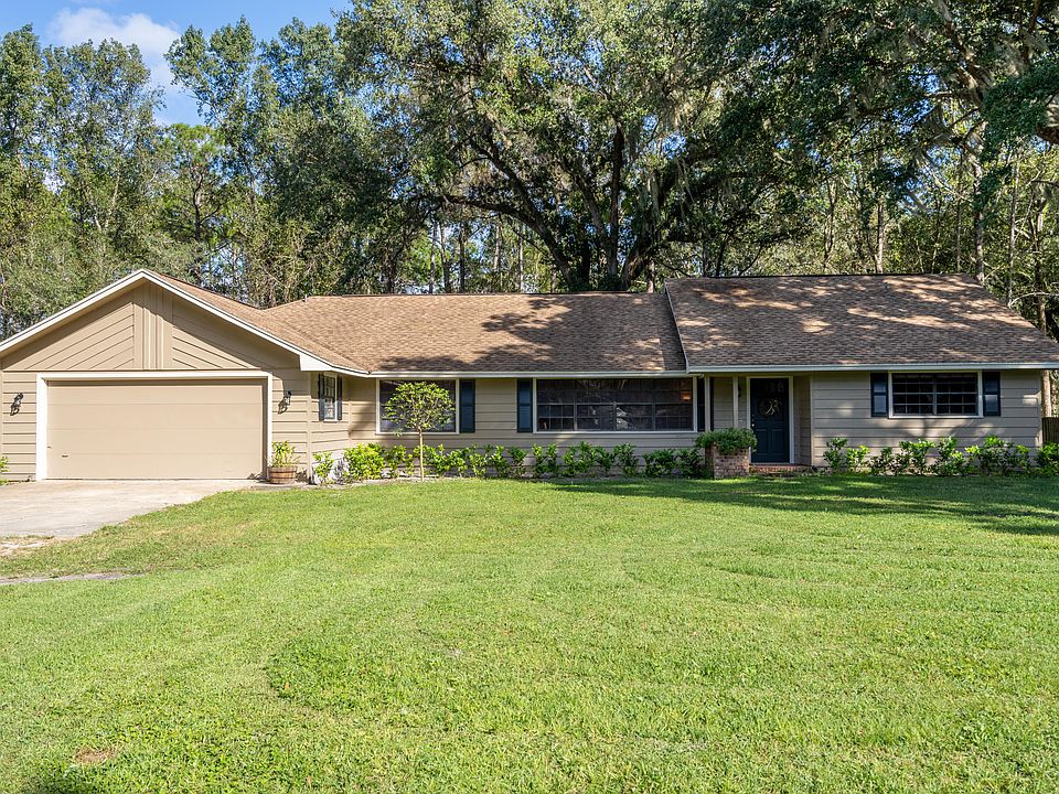 Looking for acreage, yet close to the city? Look no further. This 3 bedroom, 2 bath home sits on a little over an acre with mature oak trees. The home features a large eat-in kitchen, large family room with brick fireplace, extra large formal living room & a good sized dining room. Split bedroom plan for added privacy. Master suite with private master bath. The home is in Ormond Beach with low Flagler county taxes. There is plenty of room for the kids &/or dogs to play in the fenced in back yard. Enjoy nature on either the wooden deck out front or on the screened deck out back. The home also has an over sized 2 car garage.