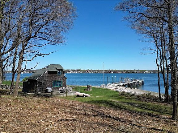 Fantastic opportunity to build your waterfront dream home on nearly 5 acres. This private, southeast facing site, includes an oversized fixed pier with two floating docks, deep water access and room for up to 6 boats. The property currently has a charming boat house with panoramic views of Bristol Harbor and beyond. The site has undergone extensive clearing of invasive growth greatly enhancing the views. One of the few remaining buildable sites inside the gated community of Poppasquash Point.