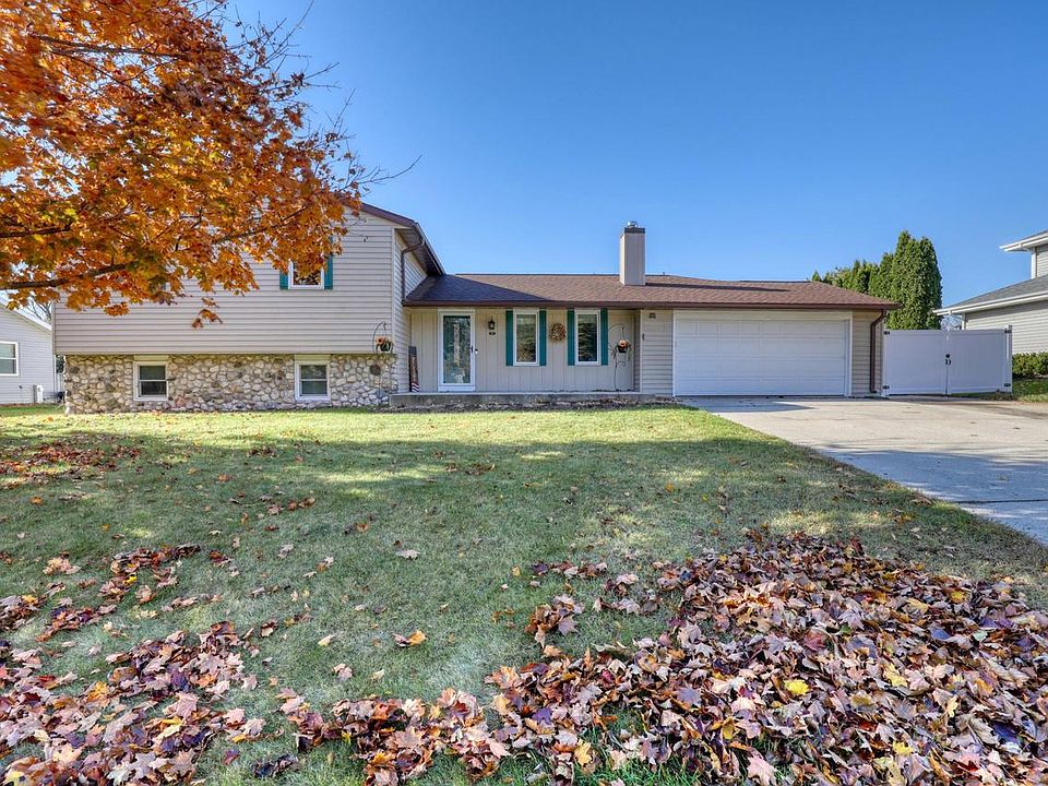 Only available due to a job transfer, this well-maintained tri-level home offers 3 bedrooms, 2 baths, and a walkout lower level! Enjoy a brand-new kitchen appliance package, newer roof (2020), furnace and A/C (2018), water heater (2023), water softener, Refrigerator, Double Oven/Range(2025). Relax by the natural fireplace on the main level or in the spacious lower-level family room. The large fenced yard includes a shed with a concrete floor, perfect for storage or projects. An oversized 4.5-car tandem garage provides ample space for vehicles and hobbies. Move-in ready with comfort and updates throughout!