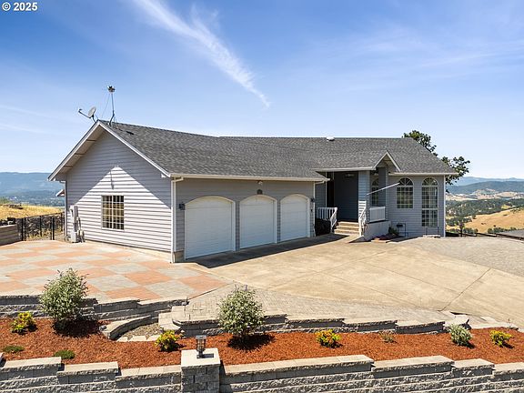 *** Priced for Immediate Sale!!*** Entertainer’s Dream with Spectacular Umpqua Valley Views and an ADU. Welcome to this stunning custom home, designed for luxurious living and effortless entertaining. From the moment you step through the grand entry with its gleaming marble tile floors and elegant tray ceiling, you'll be captivated by the attention to detail and quality craftsmanship throughout. Enjoy sweeping views of the Umpqua Valley and Callahan Mountains from the gourmet kitchen, where a large picture window above the sink allows you to take in the scenery while cooking. The kitchen is equipped with a gas cooktop, wine cooler, and brand-new stainless steel double ovens and French door refrigerator, offering both style and functionality for the home chef.Host unforgettable gatherings in the formal dining room, where you can savor your meals while gazing at breathtaking views. Then move into the den area, featuring a built-in wet bar with wine cooler. An integrated sound system throughout the home creates a seamless flow into the extensive outdoor spaces.Step outside to the expansive decks, ideal for soaking in the incredible panoramic views. With a built-in BBQ kitchen, the deck offers ample space for lounging, outdoor dining, enjoying sunsets, or hosting large gatherings—all surrounded by easy-care landscaping. Retreat to the spacious master suite, complete with a cozy sitting area and French doors leading out to the deck. Indulge in the spa-like master bath, featuring heated floors, a jetted tub, and a luxurious panel shower system with rain shower and body jets. Perfect for multigenerational living or hosting guests, the downstairs guest quarters feature a separate entrance, private deck, laundry hookups, and a flexible studio-style layout. Additionally, a certified kitchen in the third garage offers incredible potential for culinary projects, catering, or a home-based business. All of this, located in the prestigious gated Ridgecrest community, awaits you.