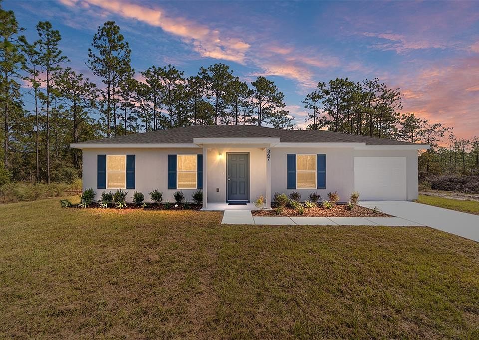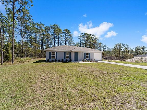 This split plan is open, light & bright. From the moment you walk through the front door you will feel the openness with the cathedral ceiling in the foyer, living room, and dining room! The kitchen comes complete with new stainless steel range, microwave, and dishwasher with ample counter space and cabinetry! A spacious pantry is conveniently located near the kitchen. Enjoy the morning cup of coffee at the breakfast bar or on the back patio. Do laundry with ease in the air-conditioned laundry room. This home rests on just under a 1/4 acre lot ~ enough room for the family & pets to play, but not too much yard work. The community center hosts regular activities and has outdoor pavilions available for event rentals. Amenities include basketball courts, tennis courts, pickleball courts, playgrounds, and a boat ramp and dock! All this with no HOA! The home is conveniently located to an abundance of outdoor recreational activities! It is just a short drive to the Withlacoochee or Rainbow Springs State Park for swimming, canoeing, tubing., fishing, boating, camping, and hiking the nature trails just to name a few! The World Equestrian Center is just minutes away. Builder is including a 1 year full warranty and a 2-10 home warranty! Any dimensions listed are approximate. Photos/Virtual Tour are to show interior and exterior colors and finishes and may or may not be of this actual listing. Garage orientation and floor plan may vary for actual home. BUILDER WILL PAY UP TO $4000.00 TOWARDS BUYERS CLOSING COSTS WITH FULL PRICE OFFER!