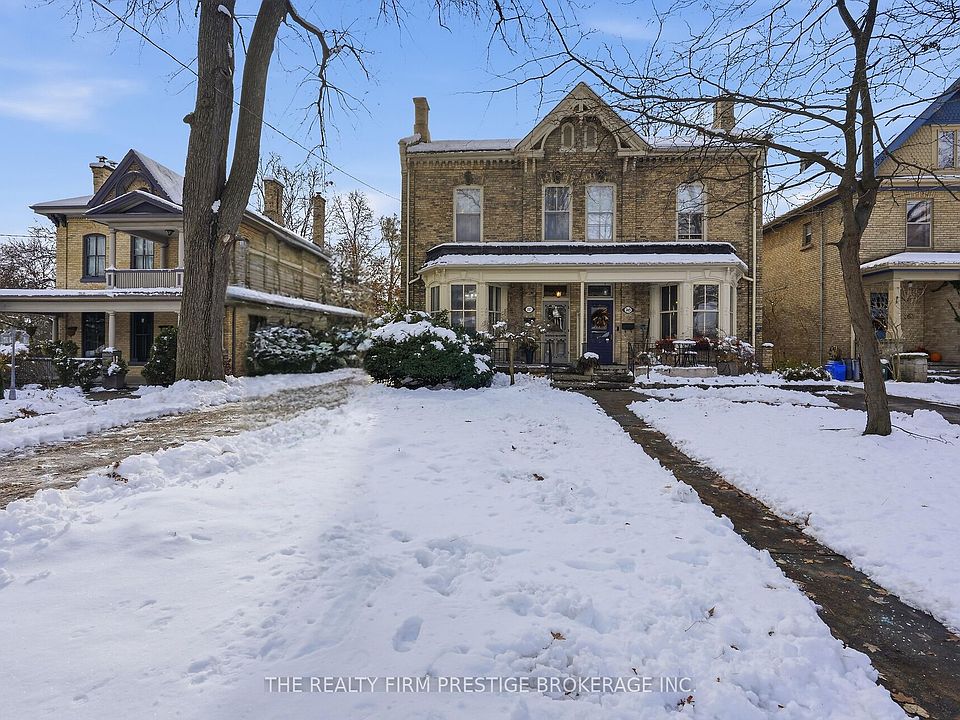 Welcome to 367 St James St. A timeless two-storey residence rich with character, charm, and over a century of stories. Once photographed alongside the King and Queen of England during their Royal visit to London in 1939, this home has been lovingly maintained and thoughtfully updated while preserving its historical elegance. The main floor greets you with gleaming hardwood floors, soaring 12-foot ceilings, and an original fireplace framed with marble tile. Oversized windows bathe the living and dining rooms in natural light, creating warm, inviting spaces for both everyday living and memorable gatherings. The spacious dining room easily accommodates large family dinners and celebrations. A convenient 2-piece bathroom sits just off the functional kitchen, which features a generous island with seating and plenty of workspace. At the back of the home, a cozy den overlooking the yard offers the perfect spot for reading, relaxing, or working, complete with an electric fireplace for added comfort. Upstairs, you'll find two distinct living areas. To the left are three generous bedrooms, including the primary, all with hardwood floors, 12-foot ceilings, and charming transom windows above the doors. The updated 4-piece bathroom blends modern touches with original built-ins, including wall drawers and cabinet storage. A cedar-lined closet provides ideal extra storage. A fourth bedroom offers flexibility as a nursery, office, or playroom. Original radiators paired with forced-air heating keep the home comfortable throughout the winter months. The unfinished attic space is brimming with potential - imagine a yoga studio, office, creative retreat, or play area. The expansive backyard offers the possibility of adding an additional dwelling unit, perfect for an in-law suite or a short-term rental. Located in the heart of Old North, this home is steps from Western University, downtown, excellent schools, and all the charm the area is known for.