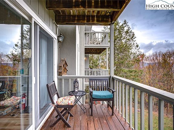 Upon entering this 2 bedroom 2 bath condo your eye is immediately drawn to the spectacular panoramic mountain view! Located near the top of Sugar Mountain in the Skyleaf Community, this condo has an easy 3 step entry from the flat parking area. The Condo comes fully furnished so it's move-in ready or ready to rent for ski season. The kitchen has numerous upgrades including recessed lighting, granite countertop, undermount sink, stainless steel appliances, oven/microwave combo, cooktop and ceramic tile flooring. Just outside the kitchen is an open concept dining and living area with a custom fireplace mantel. Please take note of the various natural edge, one of a kind, wood accent pieces throughout the house. That amazing view can be seen from almost every room including the living room and primary bedroom! The primary has an ensuite with tub/shower combo. There is another full bath and a secondary bedroom. One level living! 4600' above sea level allows for cool summers. For winter take the Ski Bus to the slopes which stops at Building E.The POA provides an adjacent laundry house for residents at no extra charge. the monthly POA fee also includes your Spectrum TV and wifi.. Skyleaf Community is minutes from numerous amenities including the Village At Sugar Mountain Resort, Banner Elk, Beech Mountain, Grandfather Mountain and many others. Skyleaf is pet friendly!