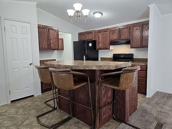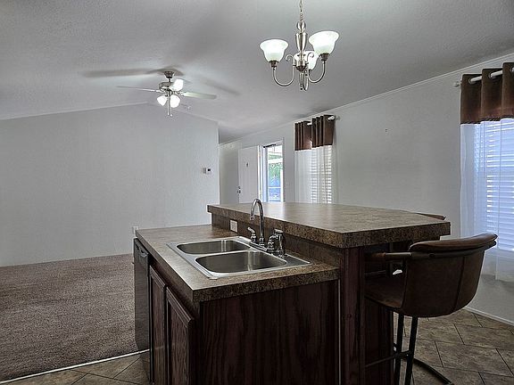 The home features beautifully rich mahagony cabinets throughtout the home, kitchen island w/breakfast bar and a pantry!