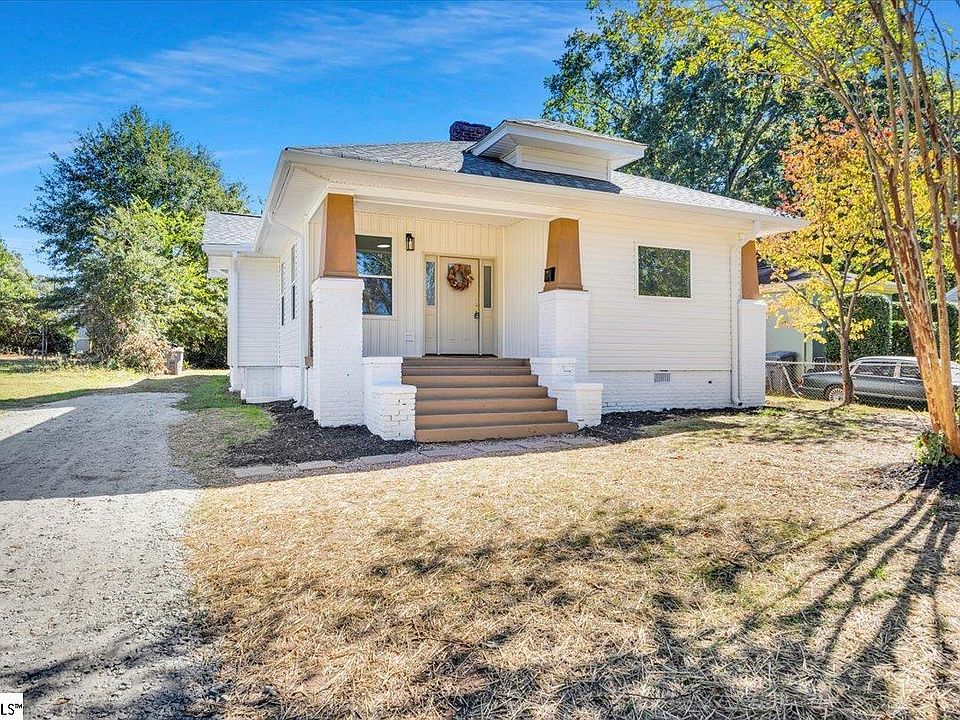 Step into this fully renovated bungalow that blends timeless charm with modern updates, all just minutes from the heart of downtown. As you enter, you’ll be welcomed by soaring ceilings, abundant natural light from brand-new windows, and durable LVP flooring throughout. The functional layout begins with a cozy living room and flows into a spacious dining area and stunning kitchen featuring new cabinetry, granite countertops, and stainless-steel appliances. Two comfortable bedrooms share a stylish full bath, while a walk-in pantry and dedicated laundry room add everyday convenience. The private primary suite completes the home, offering generous natural light and a beautifully updated bathroom—your perfect retreat. Move-in ready and designed with care, this home offers both character and efficiency. Don’t miss your chance to enjoy all the benefits of downtown Spartanburg living—schedule your showing today!