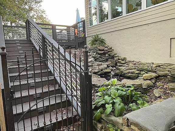 Plenty of patio for entertaining around in-ground pool & sunroom. *Master has access to patio & pool,. *New 3/4 hickory hardwood floors.*Extra deep basement  with custom sauna.*Dumb waiter installed to carry groceries! Deck & outdoor fireplace. Plenty