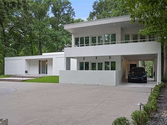 This spectacular contemporary estate on 2.5 private acres stands as a true landmark in Buckhead's prestigious Paces neighborhood. Sophisticated in design yet warm and livable, the property offers a rare balance of modern architecture and everyday comfort. A private drive leads to an expansive motor court, mature landscaping, and a turfed front lawn, setting the stage for the home's striking entrance. Inside, a dramatic foyer with 12-foot ceilings introduces sun-drenched interiors framed by walls of windows, soaring ceilings, and sleek contemporary details. The main-level primary suite boasts a newly renovated bath and an oversized custom closet. Designed for both everyday living and grand entertaining, the main level showcases a vast living room that also functions as a formal dining space for 12+, anchored by a large wet bar ideal for gatherings. Additional highlights include a private office, stylish powder room, and a comfortable family room. The chef's kitchen features stone counters, SieMatic cabinetry, Gaggenau ovens, an 8-burner Russell gas range, and a wine refrigerator, and flows seamlessly into a fireside breakfast room overlooking the lush, private backyard-complete with ample space for a future pool. Upstairs, two bedrooms and two bathrooms are complemented by a spacious bonus room that opens to a covered deck, perfect for year-round outdoor enjoyment. A possible fourth bedroom, currently serving as an office, enhances the home's flexibility. New windows throughout fill the interiors with natural light and frame views of the surrounding greenery. Outdoor living is equally impressive, with porches on both levels, expansive lawns, and multiple areas designed for recreation, relaxation, and entertaining. Located in the sought-after Jackson Elementary district and close to Buckhead's premier dining, shopping, and schools, this remarkable estate offers an unparalleled lifestyle in one of Atlanta's most coveted neighborhoods.