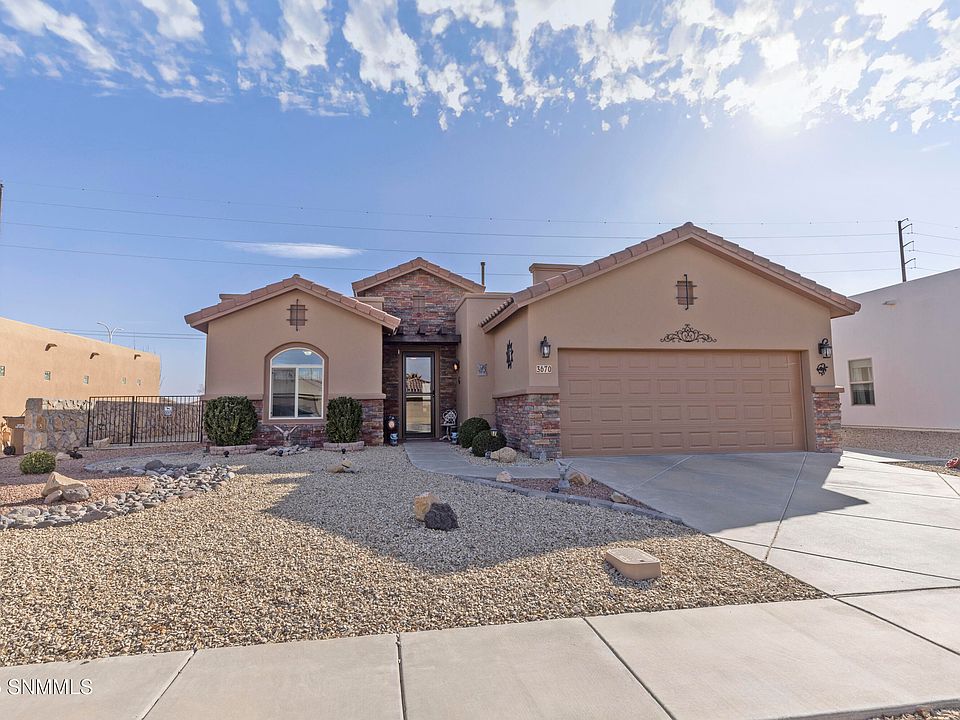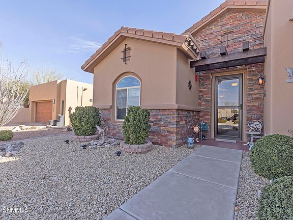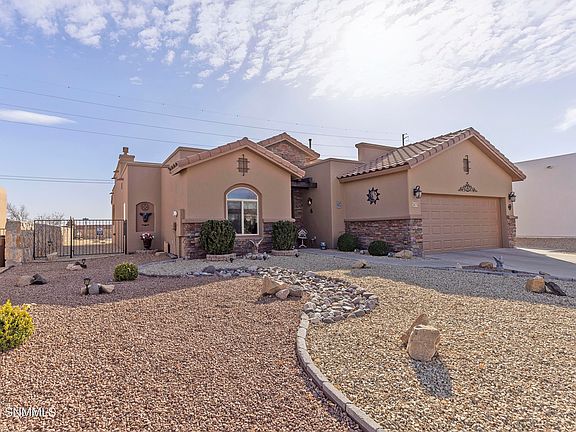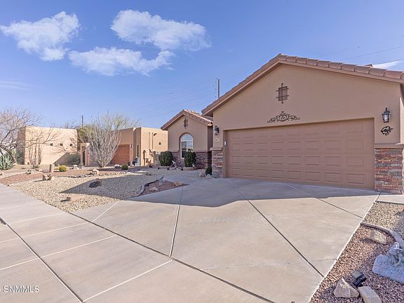 Welcome to your dream home nestled in the heart of Las Cruces! This newly listed residence offers a spectacular blend of luxury, space, and breathtaking mountain views that are sure to captivate. Boasting three large bedrooms, including a spacious primary bedroom, and two pristine bathrooms, and a large flex space with multiple use options, this home is perfect for relaxation and personal retreats.Encompassing 2272 square feet of beautifully appointed interior, the residence also features an 18-foot-wide garage door to accommodate all your vehicular needs and an expansive driveway. The 11-foot ceilings in the living room add a grandiose feel, enhancing the open and airy atmosphere, complemented by custom features that radiate modern charm.Step outside to a generous 14x21 covered patio overlooking the picturesque scenery - ideal for entertaining or peaceful solitude.