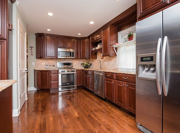 Beautifully updated ranch home sitting in the heart of Winston Knolls, a picture perfect family neighborhood. This oversized corner tree lined lot gives you the privacy you've been looking for. Fremd HS district. Open floor plan with rich hardwood floors, recessed lighting and elegant crown molding throughout the main living area. Kitchen boasts custom soft close cherry wood cabinets, granite counters, stainless steel Electrolux and KitchenAid appliances and as if that wasn't enough, an 8 ft long island for entertaining. Family room with live edge mantle atop the wood burning fireplace, opens up to sizable deck and spaciously fenced in backyard. Bonus rec area in full basement makes a great play or movie room, plus you have an added bedroom and bathroom. Join your neighbors as they walk their kids to school, have play dates at the park, or slalom down the sledding hill. The sense of community you've been hoping to find. This one won't last long. Welcome to your forever home!