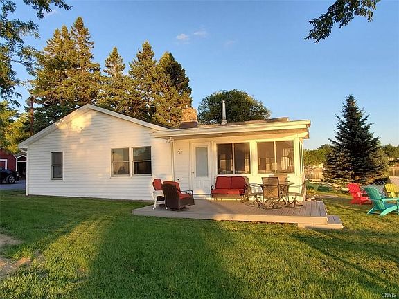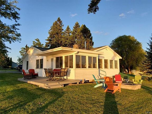Panoramic scenic views of the St.Lawrence shipping channel and breathtaking sunsets are yours to enjoy every day from this well maintained river home situated on the shore of Sand Bay. The views are inescapable from the ample well-placed windows in Kitchen,dining living ,and very pleasant Florida room. A beautiful cobblestone fireplace centrally located graces the open floor plan,that is in such high demand these days, and provides both warmth and character. Numerous upgrades include remodeled bathrooms, entryway, kitchen floor, fresh paint throughout, a new trex deck for outdoor dining and relaxing, plus a firepit and brand new Feighner double jet ski lifts with portable dock.. This home is suited for year round use with forced air heating and features central air for those hot days of summer. The shoreline boasts a recently rebuilt concrete seawall combined with a stone retaining wall and trex deck that creates a very private space for enjoying the river's splendor. The small boathouse is perfect for storing kayaks and other accessories. Two storage shed's behind the house provide plenty of storage for tools and supplies. Owner will convey some furnishings, a list is provided.