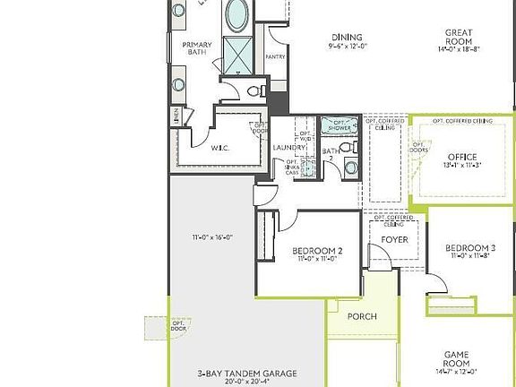Designer upgraded, single-story home featuring a spacious and flowing floor plan, 4 bedrooms, 3 bathrooms, an office, game room, an attached 3 bay tandem garage, outdoor living spaces including a covered patio, and so much more! The kitchen is open to the dining and great room area and includes a Cafe 36'' gas cooktop appliance package with a double oven, microwave, and commercial style hood, Granite countertops, a Delta Essa Touch faucet in Arctic Stainless, and custom backsplash. Other designer highlights include a freestanding tub at the primary bath, two sinks in the secondary bathroom, 18'' x 18'' tile flooring and carpet at the bedrooms, Winstead Maple Flagstone cabinets and soft close cabinets throughout, an Iron front door, and pavers at the driveway and front walkway.