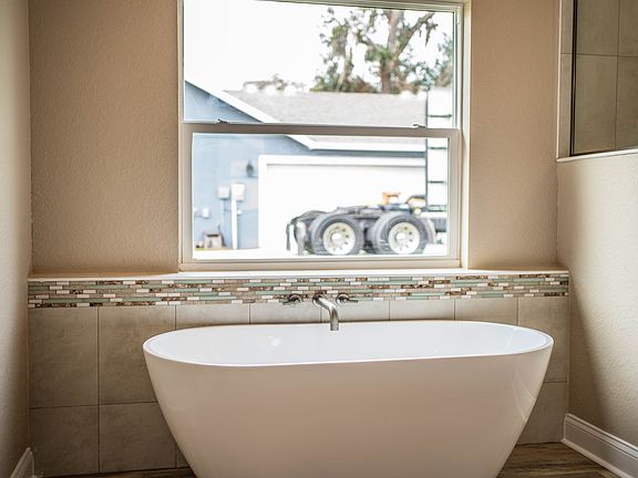 New construction, luxury home, loaded with upgrades on a half-acre lot! This spacious home with over 2200 square feet of living space features a split floor plan with four bedrooms and three bathrooms. The fourth bedroom has an ensuite bathroom that also has exterior access to the back covered lanai. The kitchen boasts stainless steel appliances, soft close cabinets and granite countertops. Home features luxury vinyl plank flooring in living areas and carpet and ceiling fans in all bedrooms. The primary bedroom suite has tray ceilings, a huge walk-in closet, and a bathroom complete with soaking tub and walk in shower. Other upgrades include an inside laundry room and a two-car garage with garage door opener.