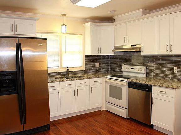 Beautiful ranch home with front porch on a finished basement, newly remodeled kitchen with granite countertops, NEW hardwood floors in kitchen and dining room and newly refinished flooring throughout main level. Long driveway with extra parking space! Basement has heated tiles & heated hardwood floors! Has 2 additional rooms that can be bedrooms and extra storage space. No HOA! Also has security camera system already installed! Great location with easy access to 85/285 and shopping and restaurants.