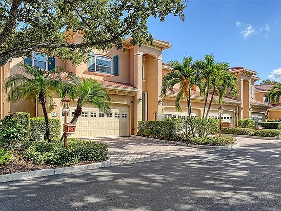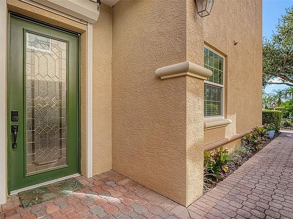 Tropical paradise awaits you. This fabulous, elegant 3BR/2BA 2 car garage first floor unit is fabulous. The beautiful kitchen offers quartz counters, wood cabinets with wood pull outs, snack bar, eat-in area, pantry closet top of the line appliances & canned lighting. Boasting crown moldings, tray ceilings, wood and tile flooring, central vac, huge primary bedroom closet, ship lap accent wall in 2nd Bathroom. Murphy beds located in bedroom 2 & 3, create space and storage. Hurricane shutters and impact windows. The spacious Living room and Dining room overlook the huge lanai, then a private oasis including pond with fountain and lush landscaping. The primary bedroom has a coffered ceiling. The primary bath offers a separate soaking tub & shower, plus dual sinks. The barrel tile roof was replaced in 2023 (which is a condominium responsibility). A/C is 4 years young, water heater replaced in 2019. This is not an age restricted community, very friendly 29 units, community pool, spa and pavilion. 2 pets are allowed dog or cats up to 30 lbs. You can’t beat this terrific location right across from Costco, JC Penny, Legacy trail, near the YMCA and just minutes to Siesta Key Beach. See it Today.