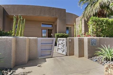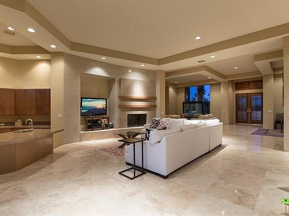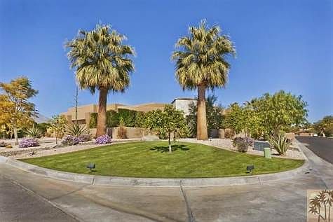 Luxury resort living with total privacy and all desired amenities on an approximately 18,295 sq ft lot. Five bedrooms offer en suite bathrooms including the attached guest house; Master suite w/huge walk-in & is well separated from guest bedrooms. Spacious open plan with soaring ceilings, travertine flooring, abundant natural light, two fireplaces and chef's kitchen with granite island. The private backyard oasis features an inviting pool and spa featuring a new salt system, built-in barbecue, outdoor dining, fire pit and lush yard with mature palms & citrus trees.The home features many interior and exterior lounge & dining seating areas to accommodate many guests. Three car garage & potential for RV parking too! Your own private desert resort or generate substantial income potential (approx. $100K plus) from this remarkable modern vacation rental!