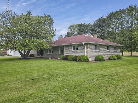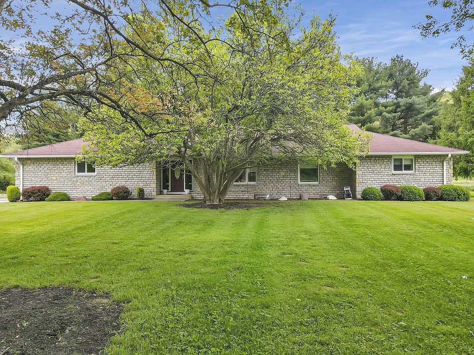 Welcome to this charming stone ranch on a beautiful 1.44-acre lot! This versatile home boasts 3 generous bedrooms, with the added bonus of an office space that can easily serve as a 4th bedroom if desired. 2 full bathrooms on the main floor, one completely updated including a tile shower. The quaint kitchen has been updated with stainless appliances and granite and Corian countertops. Built-ins and 2 fireplaces add to the character of the home. The basement is partially finished and offers more living space and unique bar area perfect for entertaining. Unwind in the relaxing four-season room that offers panoramic views of the backyard and patio area. Need garage space? This one fits the bill with an attached two-car garage and a detached 30x40 with 4 bays. Don't miss out - showings begin Saturday 5/17!