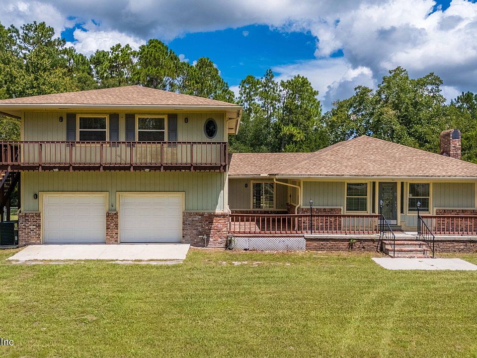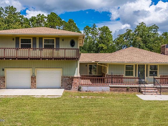 This very unigue home offers 3 bdrms, 2 full baths, 1/2 bath. Main level consist of formal living room with fireplace, family room, 1/2 bath, primary bedroom, ensuite bath with double sink vanity, bathtub, nice sized walk-in shower, and large walk-in closet. 2 oversized bedrooms upstairs with hall bath. Newer wrap around decking on second level with access through french doors, and new decking on main level in the rear. Newer roof, and HVAC (2-units), 2 water heaters. Propoperty comes with a shed that is 12 ft. X 32 ft. with 220 amp electric. There is 2 portable carport covers on the property, & a 2-car attached garage. All of this sits on just over an acre of land.
