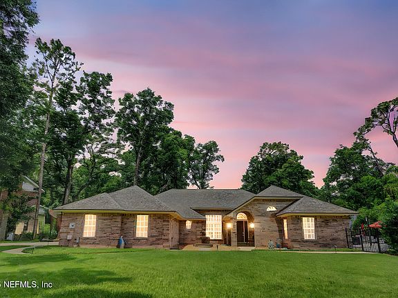Looking for a beautiful Clay county turn key custom home with a breath-taking & very private back & side yard tropical oasis? Look no further! This is the home for you! Nestled within the popular & gated Magnolia Point Golf & Country Club, this nearly full brick exterior home has it all. From the new luxury vinyl flooring to the high ceilings and transom windows, this home has been updated, very well maintained & boasts many custom upgrades. Features include an updated custom kitchen with new stainless steel appliances & solid surface countertops, updated baths, built-ins, wood burning fireplace in family room, all new ceiling fans & Plantation shutters. Other updates include interior/exterior paint & HVAC system replaced in 2022. A beautiful oasis awaits you as you wonder outside into the stunning back & side yards. There you will find a custom inground pool with fountain surrounded by 3200 sq ft paver patio & expert Disney Resort style lighting. The pool has a new pool filter filtration system converted from a sand filter in 2022 & is not only heated but it can also be cooled for those extra hot summer days. There is a locking fence in the pool area & side yard as well as a 12"x 12" Arlington Gazebo with electric attached to an 8" hurricane/tornado resistant concrete slab. All fans & expert outdoor lighting conveys. This portion of the yard has turf grass. Walk a little further and you will find a tiled, covered & large screened lanai with a sink & summer kitchen and a small circular brick terrace. You will be in awe over the gorgeous professional landscaping and lighted driveway. This home also has a 6 camera Closed Circuit TV surveillance system on the exterior which provides monitoring & great security. This private, gated community offers an Olympic size pool, clubhouse, tennis courts, golf course, pickleball, volleyball & playground as well as a full restaurant & bar. Hurry and schedule your personal tour today as this beautiful home won't last long!!
