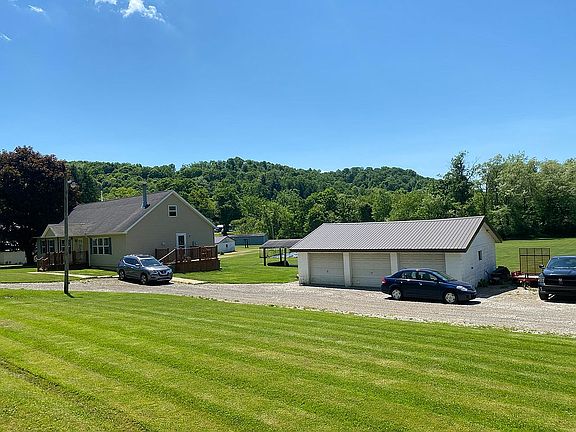 Ranch-style house with 3-car detached garage. 70 acres, free gas, great hunting. Lots of space for a couple or small family.