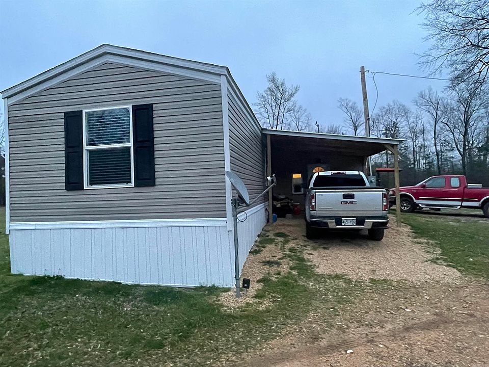 2B 2B mobile home on 8 acres. The kitchen has an island and plenty of cabinet space. the large master bedroom has a walk in closet and a full bath. The second bedroom has a large closet and access to the second bath. the home has central air and heat. the exterior of the mobile home is vinyl siding and metal roof and shed carport for parking or storage.