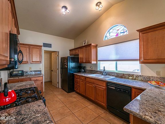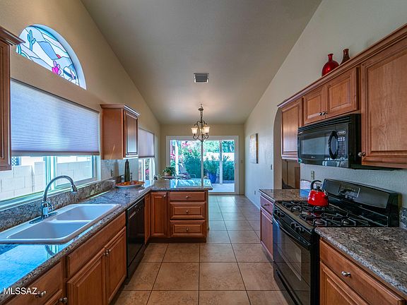 Beautifully Remodeled North Ranch Home! Step into this stylishly updated single-story home featuring modern upgrades throughout & a prime location backing to a common area for added privacy. The open floor plan showcases tile flooring throughout, tall ceilings, & abundant natural light. The remodeled kitchen offers granite countertops, Kohler sink, upgraded cabinetry, & a gas cooktop. The spacious living area includes a gas fireplace, creating a warm & inviting ambiance. Additional features include new light fixtures, some newer windows & a sliding door, a 2018 roof, & a 2021 American Standard 16-SEER HVAC system for energy efficiency. The garage includes built-in storage, & the front entry features a security gate. Enjoy single-level living in one of Tucson's most desirable communities.