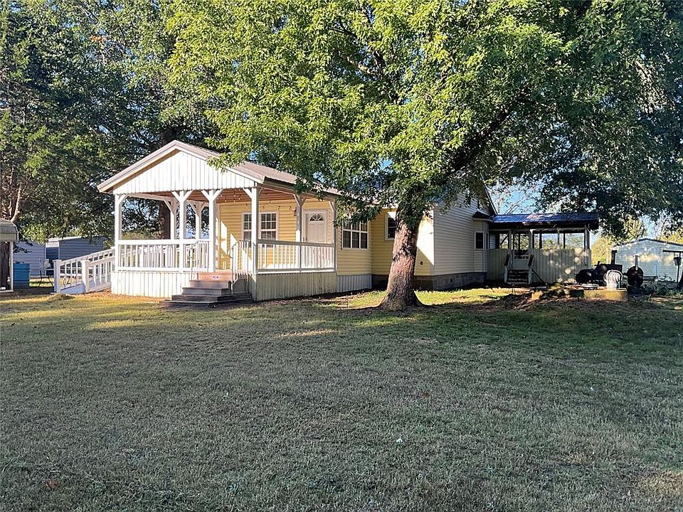 ****Seller says he is motivated***** If you are in the market for a property that you can sit on your porch and not see the neighbors ? You have found it in this home approximately 1.5 miles from I -40. You won't have to go far if hunting is you activity, large yard for your gatherings. Two metal carports, two three bay lean to's provide coverage for your equipment and ATV's and any other recreational equipment.Large covered front porch leading into a sunroom perfect for enjoying that morning coffee. The flow of this home is perfect for entertaining, the breakfast nook just off the kitchen is a plus with its extra counter top and cabinets. Oh and the screened in back porch is definitely a plus. The home has a safe room off the breakfast nook for added peace of mind with our Oklahoma unpredictable weather! Home is equipped with a whole house Generac generator for those occasional power outages. ******Seller will add gravel to the driveway where needed for the new owners. THIS IS A FRAME HOME !!!!!!