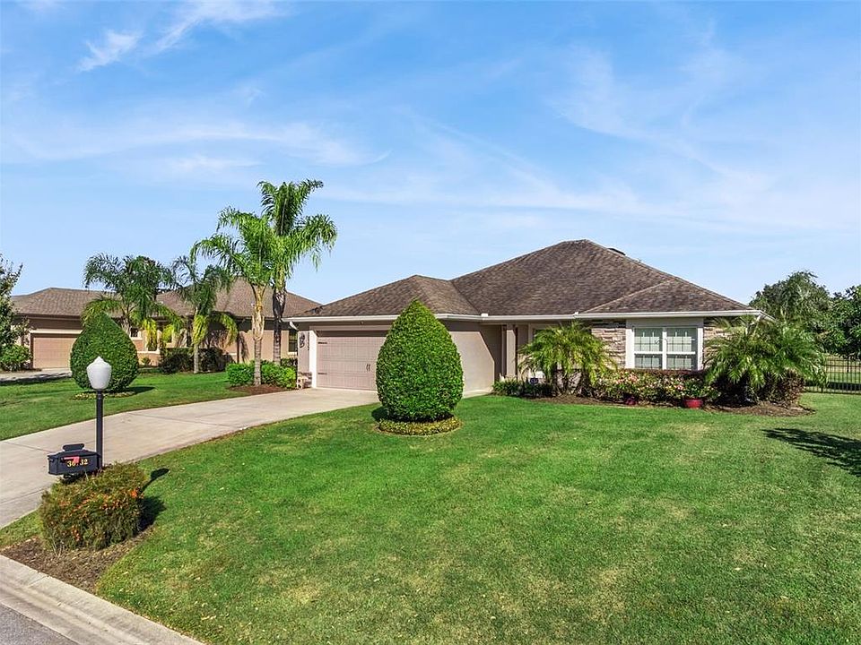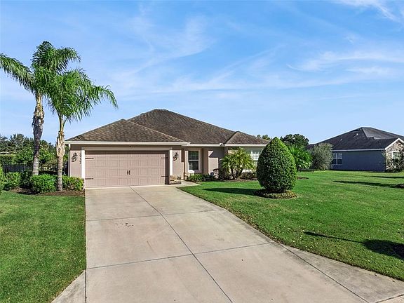 Here’s your opportunity to own this IMMACULATE 4 BEDROOM 2 BATH POOL HOME with GOLF COURSE FRONTAGE IN THE DESIRABLE BLACK BEAR COMMUNITY. Overlooking the 16th hole. Beautifully designed home maximizes space to create an incredible single-story residence with a traditional look you are sure to love. This well-designed space boasts beautiful bathrooms, elegant designer lighting, rounded drywall corners, 5-1/4" crown molding, baseboard trim, and has Energy Smart home-saving features. The lovely living room has high ceilings with Exposed Beams, making it feel inviting, which adds character and charm to a home. Custom TV wall with fireplace and lighting. These unique feature adds value to the home. French doors lead out to the covered lanai by the fabulous artisan pool and spa. Enjoy serene golf course views from your backyard as well. Tons of Natural light throughout the home. Abundance of closets. Fabulous Architectural details. The bright gourmet kitchen comes complete with Granite countertops, a breakfast bar, impressive Maple Designer Cabinetry, dishwasher, range, microwave, all energy-efficient appliances. Custom Bay Window seating. In the secluded primary suite, you will find an ensuite bathroom complete with dual sinks, oversized shower with bench, a full-width vanity mirror, and Designer Cabinetry with Granite countertops, as well as an expansive walk-in closet. Custom bedroom closet cabinetry in Primary. Oversized 2-Car Garage Attic Access from the garage. Attic is insulated and has flooring. The Saltwater pool has multi lights with a remote, heated spa and pool. A Bubbler and Waterfall that create relaxing sounds and create visual appeal.Lania includes an Electric roll screen with a remote and TV installation setup. Fence with 3 child-proof gates w/ keys. 2 cameras- 1 pointing at front yard, 2nd pointing at back yard (powered by Brinks) Front door doorbell/camera. Conveniently located just a short drive from larger cities like Orlando and Mount Dora. What a great lifestyle and an unbelievable value! Black Bear Reserve is a golf course community just 20 minutes from the picturesque village of Mount Dora, with its galleries, sidewalk cafes, and a full calendar of festivals. Black Bear Reserve's amenities include an 18-hole golf course, tennis court, pickleball, and playground. Families will appreciate the excellent schools and safe neighborhoods Eustis offers. With its close-knit community feel, Eustis is an ideal place to raise children, allowing them to thrive in a nurturing environment. Outdoor enthusiasts will love the abundance of parks and nature trails, suitable for hiking, biking, and exploring Central Florida's natural beauty. Eustis provides the perfect balance of peaceful living with easy access to urban amenities. Whether you’re looking for a cozy home or a vibrant community to join, Eustis, FL, offers a unique lifestyle that is sure to captivate your heart. Discover the charm of Eustis and make it your new home today. Septic (pumped out in 2025), Termite inspection and treatment (2024). AC serviced (2025) High Speed Internet and Cable TV are included in the HOA fee. www.lelandmanagement.com/community-portal/documents-expandable/menu-item/23517 (All HOA Docs located on Leland Community Website)