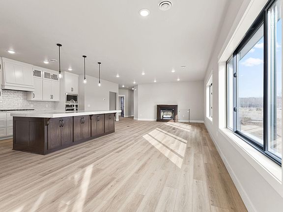 Welcome to this beautifully finished 3-bedroom, 3-bathroom home, where modern design meets functionality. Set on a flat 0.468-acre, southern-facing lot, this property is perfect for adding a pool and maximizing sunlight all year round. The striking steel siding, stone accents, and clipped gable roof create an impressive exterior, while inside, the open-concept layout offers seamless flow between the elegant kitchen, dining, and living areas. The kitchen is a chef’s dream, featuring quartz countertops, stainless steel appliances, and an eat-in island—perfect for entertaining. Natural light floods the space, highlighting the electric fireplace in the inviting living room. The sunroom with a walkout to the patio provides a peaceful retreat, while the third bedroom offers flexibility as a den or home office. A mudroom off the oversized, finished 3-car garage ensures ample storage, complete with a convenient half-bathroom and washer/dryer hookups. Move-in ready with high-end finishes and thoughtful details throughout—this home is truly a must-see!
