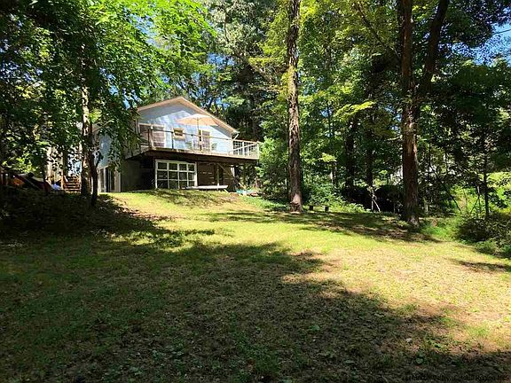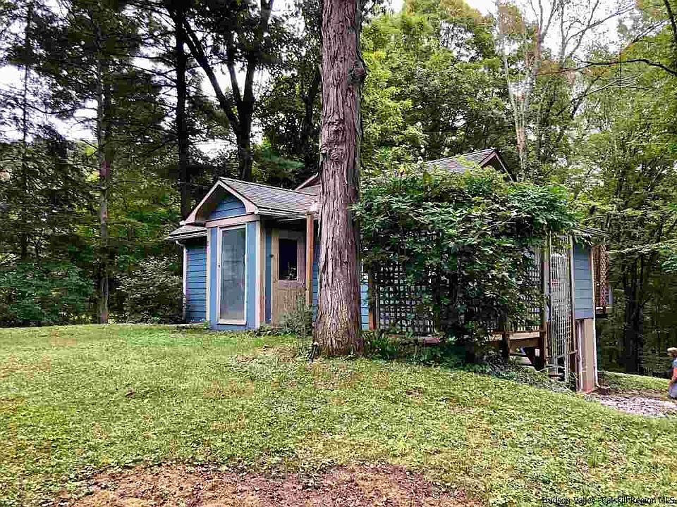 This vintage '47 cottage is like the original Tiny house. Nicely buffered from road by trees , it is just minutes from Stone Ridge, yet hidden from view. This solid 2 bedroom bungalow, offers a 10 X 24 deck from a bedroom that overlooks the woods behind the house. Enjoy the serenity of this setting, with nature surrounding and yet low maintenance yard. Full walk out basement with sliders serves well as a studio or workshop. The thermal windows are newer and the the walk up attic provides space for storage. The oak floors have just been refinished to make it ready for its new owner.