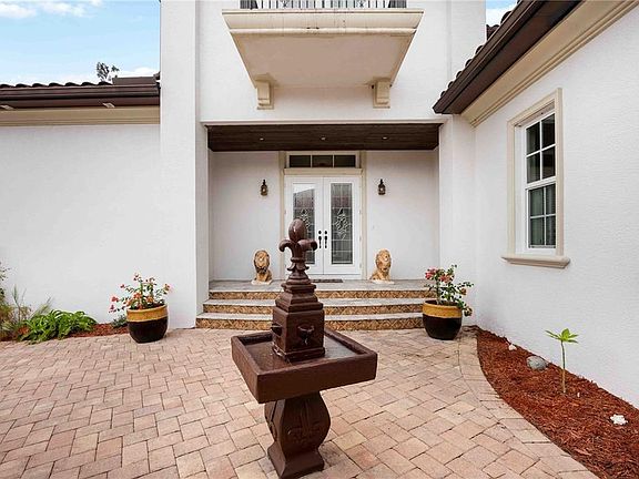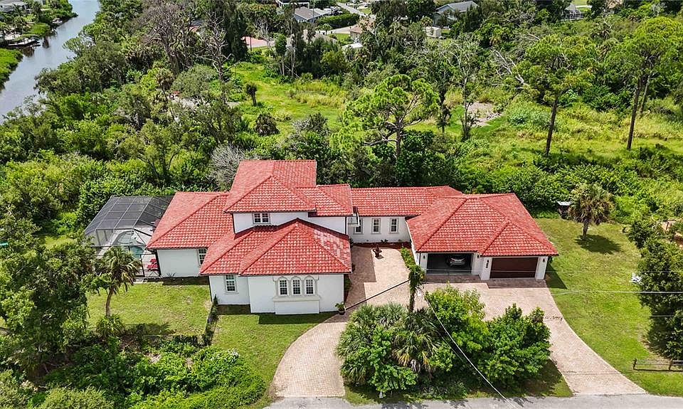 Experience the ultimate Florida lifestyle in this exceptional 4-bedroom, 4.5-bathroom waterfront estate on scenic Alligator Creek with direct access to a private beach by kayak. Built for both luxury and function, this home offers a pool & spa, 8-car garage (4 tandem or space for boat storage), and a boat dock & new ramp (2024). Step inside to soaring 12-foot ceilings, hurricane-rated front door & windows, and a flexible floor plan with all bedrooms featuring walk-in closets. The primary suite is located on the first floor with an updated spa-style bath. The home also features an in-law suite with a private bath, walk-in closet, living area, and kitchenette. Additional bedroom highlights include one bedroom with a private bath and another bedroom with a balcony. The chef’s kitchen is complemented by a wine refrigerator (conveys), and an expansive dining and entertaining space. Recent upgrades include a new water heater (2025), new pavers (2024), and a full-home generator (gas or propane). Comfort is ensured with 4 AC zones, a water softener, water filtration system, and security system with cameras and TVs (convey). Enjoy outdoor living including an outdoor kitchen with a new refrigerator (2025), multiple fruit trees, a gazebo & garden with solar lights and a fire pit, a dog run, and a covered patio overlooking the water. No HOA restrictions.This property is a rare combination of privacy, luxury, and boating access—perfect for those who want it all.