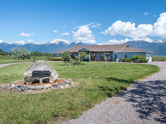 Perched atop Post Creek hill, providing a spectacular panorama of the Mission Mountains, lower Mission Valley and the National Bison Range, this peaceful retreat promises serenity, privacy and year-round scenic beauty. The 5-bedroom home adapts to suit your needs, with two distinct living areas that can be either integrated or separated, a walk-out basement, two kitchens, four fireplaces, and multiple flex rooms. Vaulted ceilings and large windows bring natural light and beauty into the home, while decks and patios provide outdoor living, dining, and entertaining space. Newly installed geothermal heat pumps efficiently heat and cool the home.