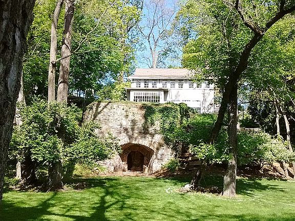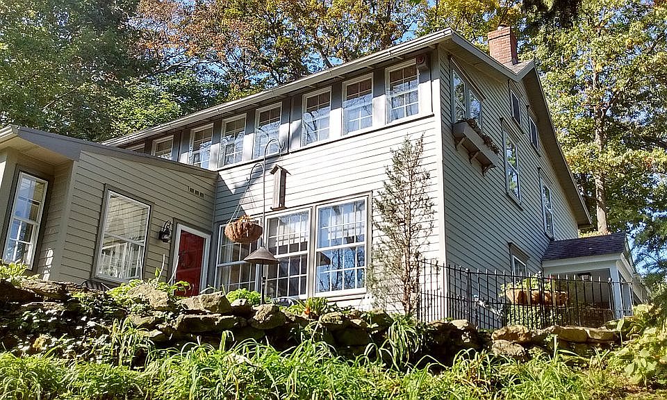 This is a quaint, lovely, well-maintained cottage that sits upon a bluff built on an historic lime kiln and overlooking the beautiful Monocacy Creek. A water view is found at nearly every window. The home is private, tucked in towards the woods far and away and out-of-view from the road and most neighbors. The surroundings include a sunken herb garden, perennial gardens, fountains, a natural pond and waterfall, bluestone patios and walks, a large open lawn, a wooded area of mature trees with a paved winding driveway and parking area, a garden house/potting shed, a tool shed and a large workshop/shed. The first floor interior includes a great room kitchen-living-dining, study, a sunny recreation or garden room, pantry/utility room, and powder room. The second floor includes four cozy bedrooms, a full bath, two walk-in closets and much storage. A full attic provides more storage or expanded living.